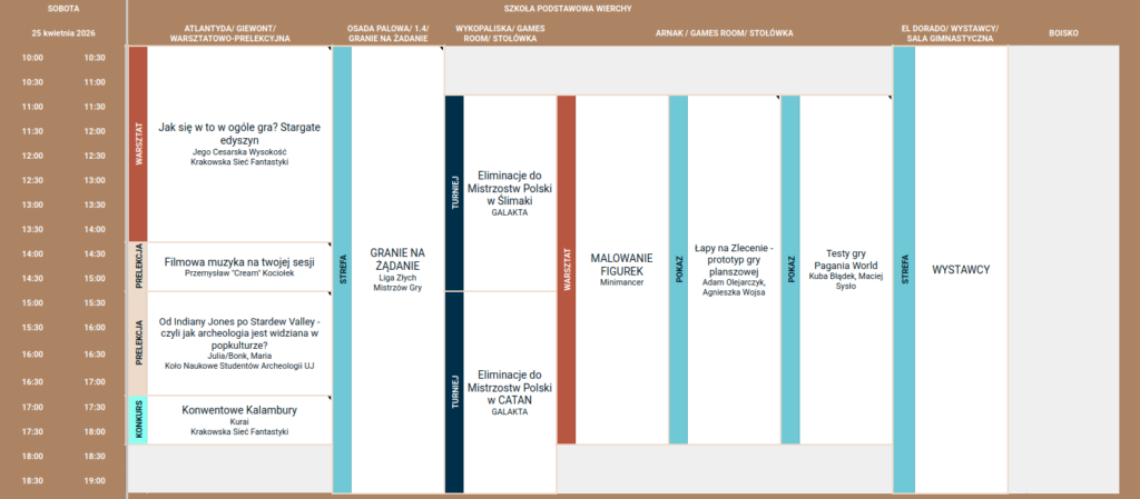 Szczegółowy wykaz sesji RPG w ramach obu dni i wszystkich tur znajdziecie na taj stronie.